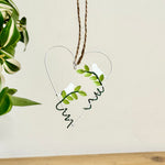 This delicate heart-shaped hanging decoration is crafted from painted metal wire and finished with charming hand-painted details. Two cheerful blue tit birds perch among green leaves, creating a light, nature-inspired piece that feels fresh and uplifting. Lightweight and easy to hang using the attached rustic twine, it’s ideal for adding interest to walls, hooks, shelves or indoor plant displays. Designed purely for decorative use, it brings a gentle countryside touch to everyday interiors. Perfect for bird lovers, garden enthusiasts, or anyone who enjoys quirky, characterful home décor.