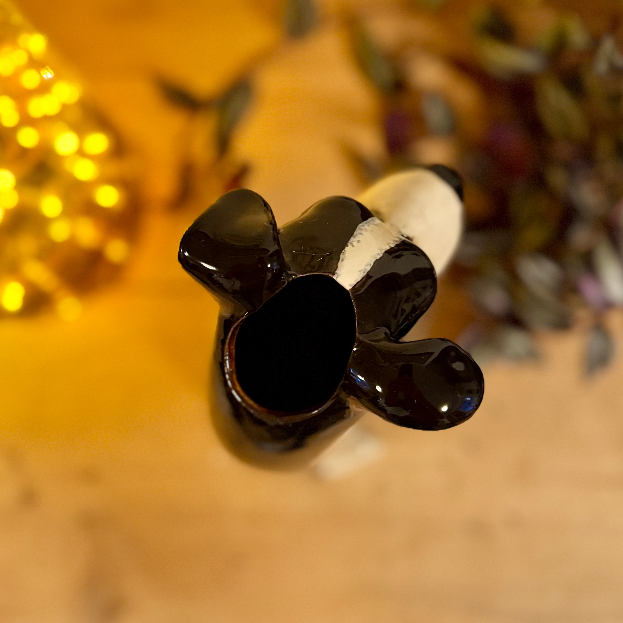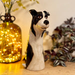 Hand-painted eccentric ceramic sheepdog vase with striking black and white detail, perfect for dog lovers or those who love quirky home décor. A unique animal vase that works beautifully with flowers or as a standalone statement piece. Unusual ceramic décor that doubles as a thoughtful gift for pet owners and collectors of characterful homeware.