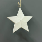 Large wooden star, white washed with brushed edges. A lovely rustic item, on a jute string.