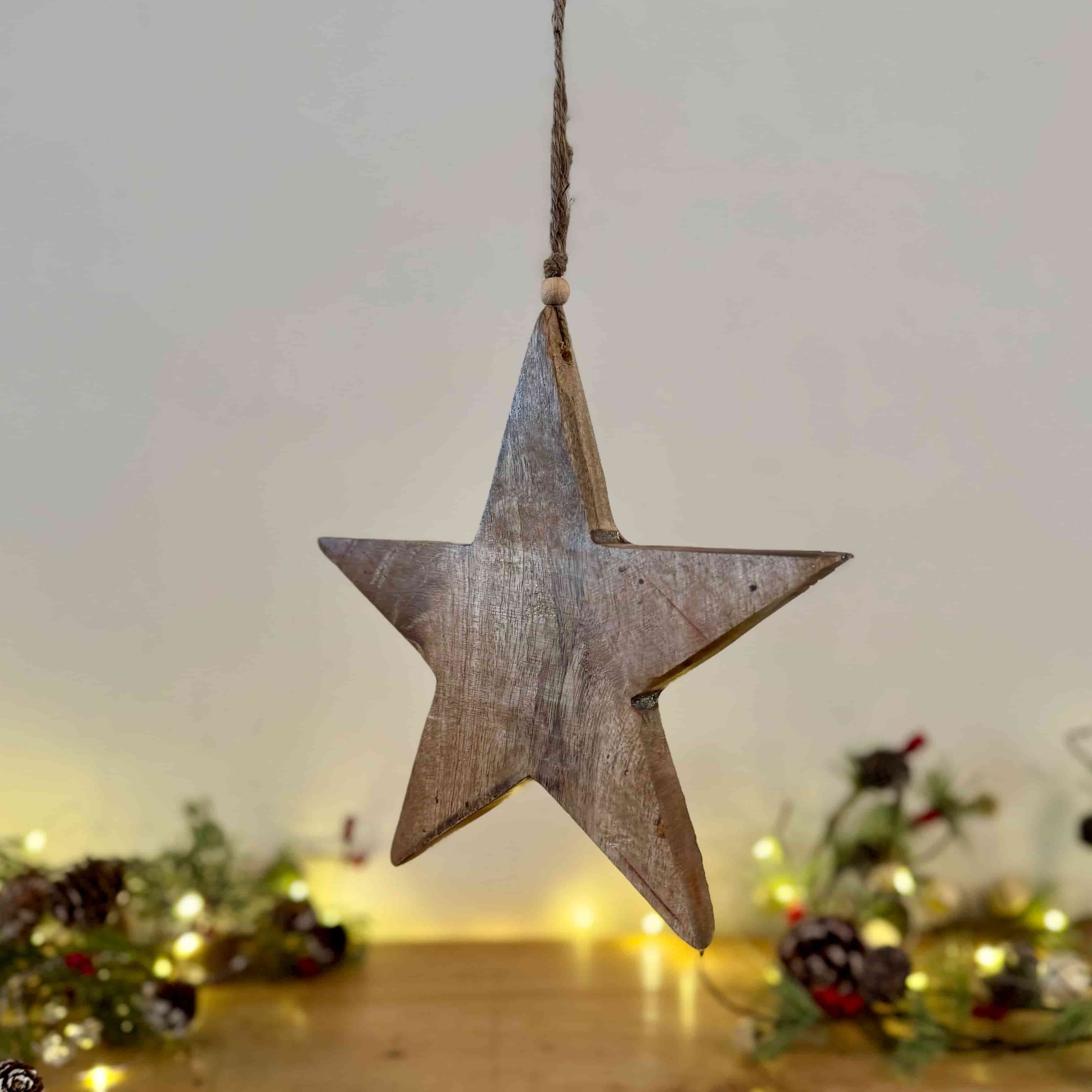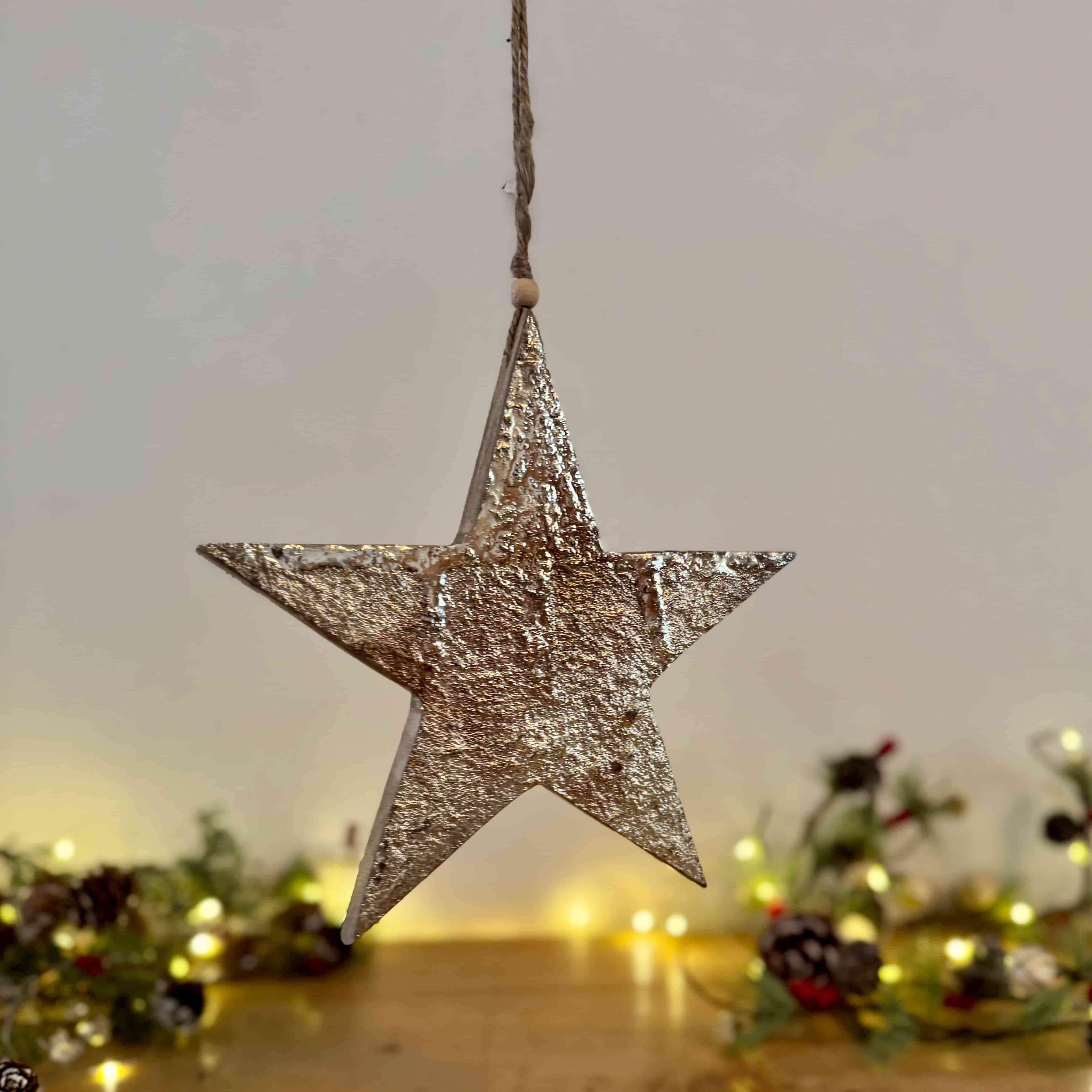 Small Hanging Wooden Stars with Tarnished Silver Leaf