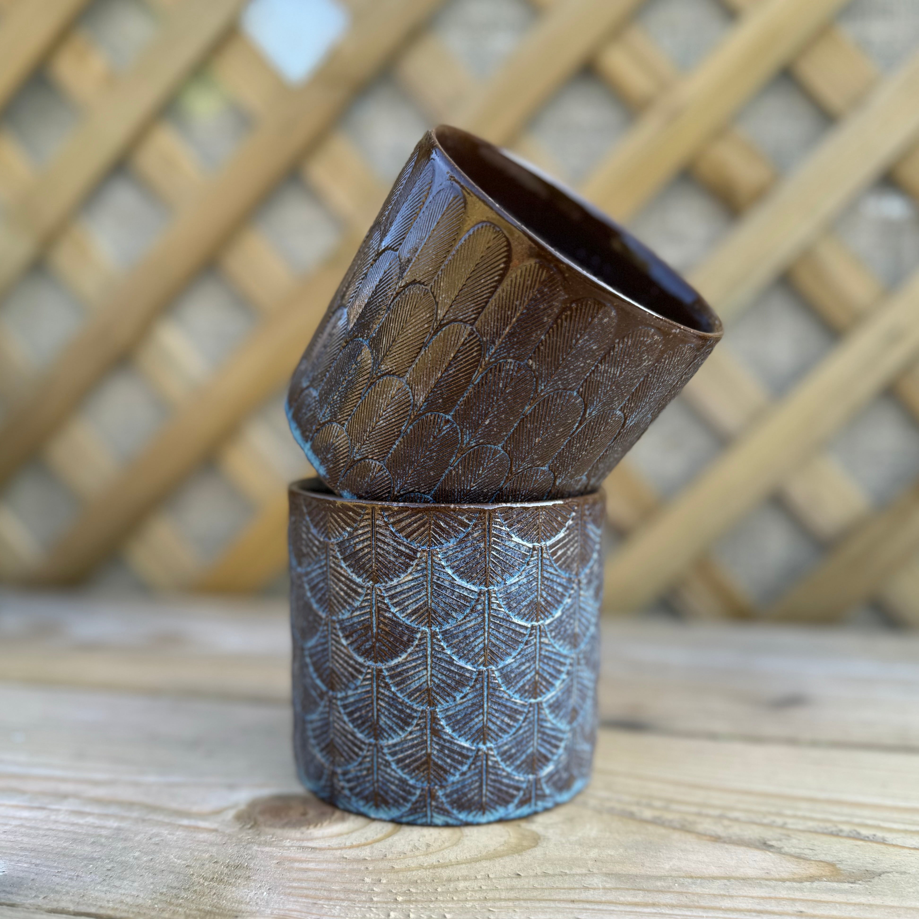 Beautiful blue ceramic pots, made from brown clay with blue glaze. A perfectly finished pot with a natural rustic finish.