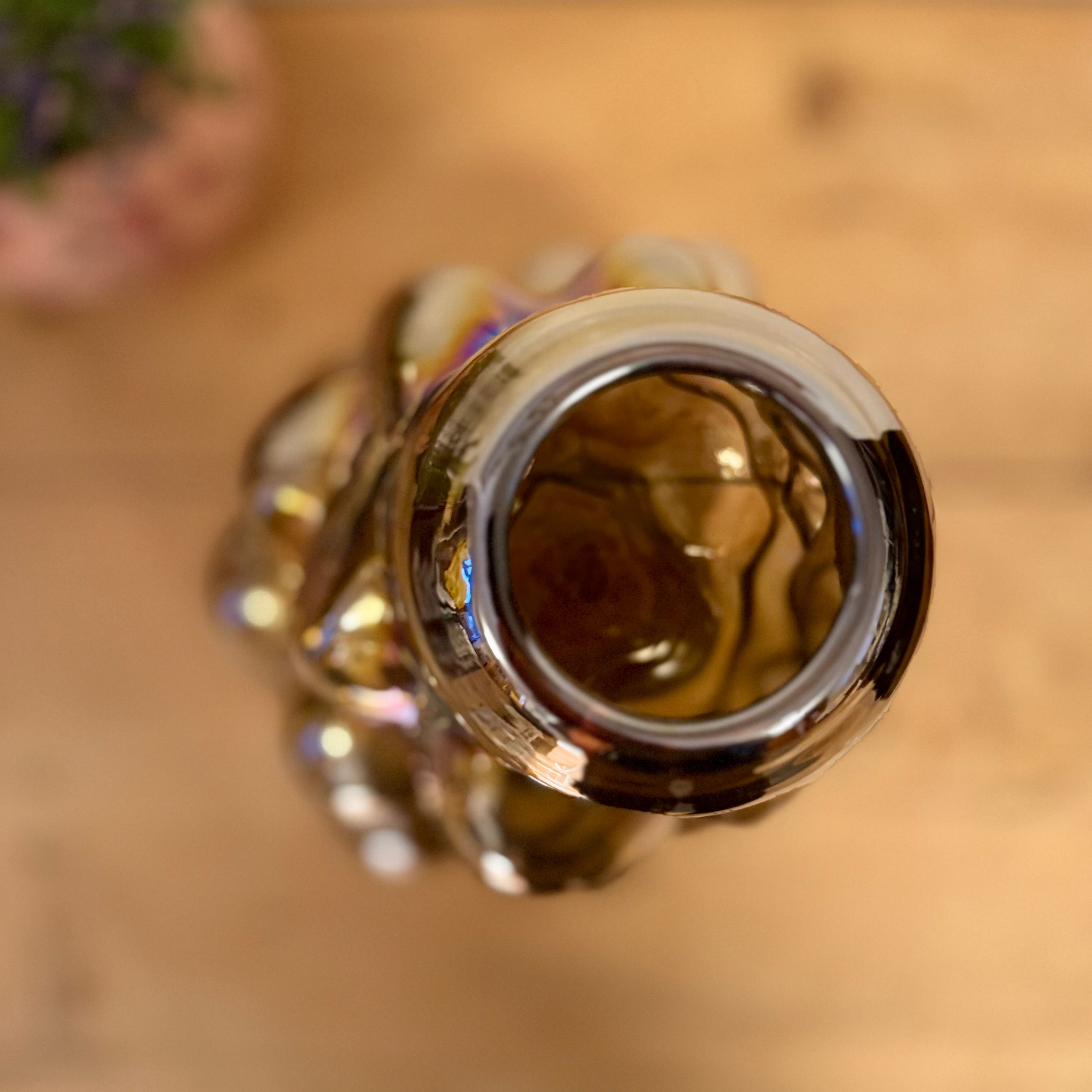 This bobble effect vase starts conversations. The pearlescent, yet translucent, finish catches the light and produces oil-slick-like waves of colours randomly across its surface. You’ll never see this vase the same way twice!