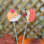 Set of two wooden hedgehog plant stakes in warm autumn colours, each with a playful apple detail. Pop them into pots, planters or seasonal arrangements for instant woodland décor. Perfect for autumn displays, table centrepieces and porch planters. Lightweight painted wood on sturdy picks; ideal indoors or in covered outdoor spots.