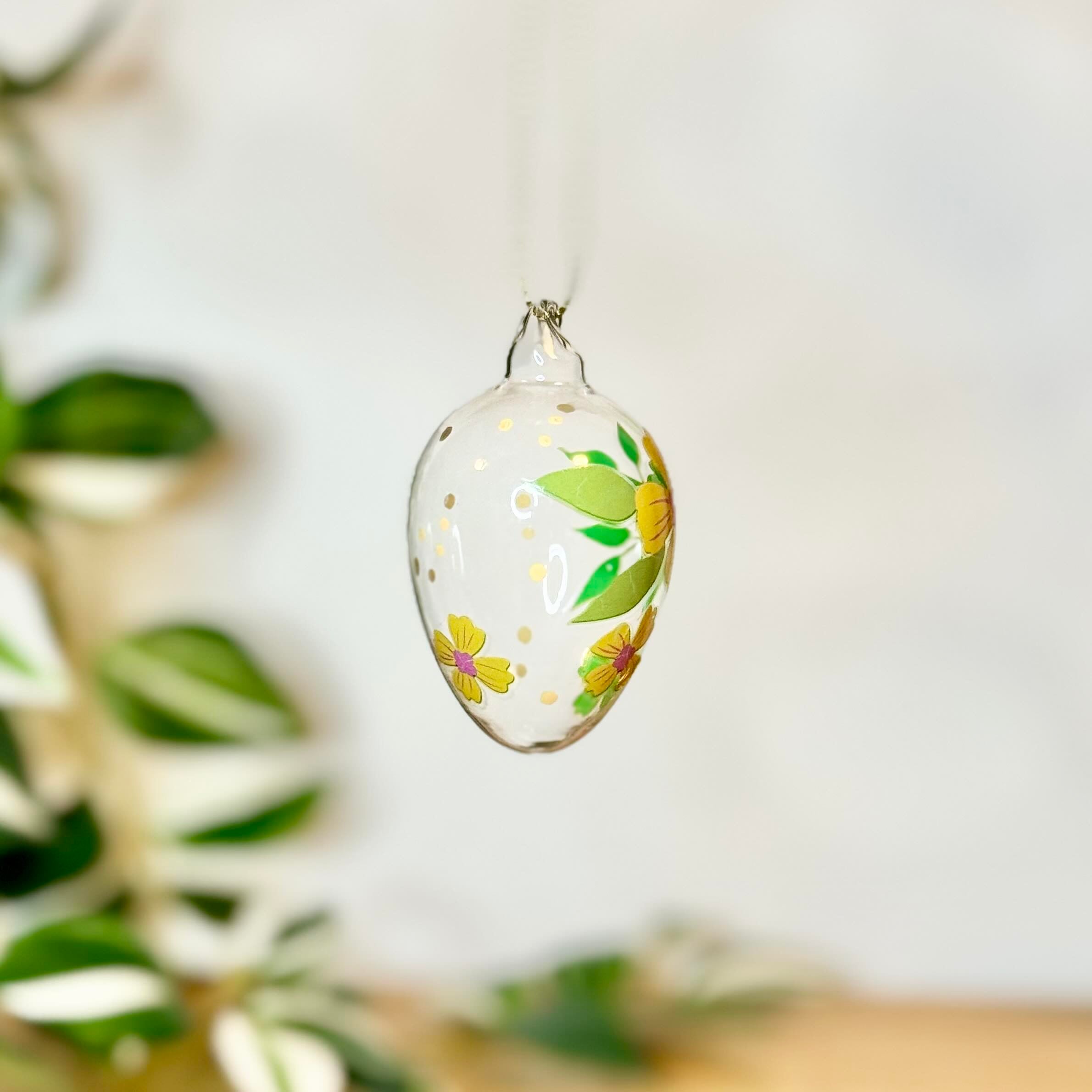 Glass Egg Bauble with Yellow Flowers
