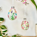 Pair of Floral Glass Egg Baubles