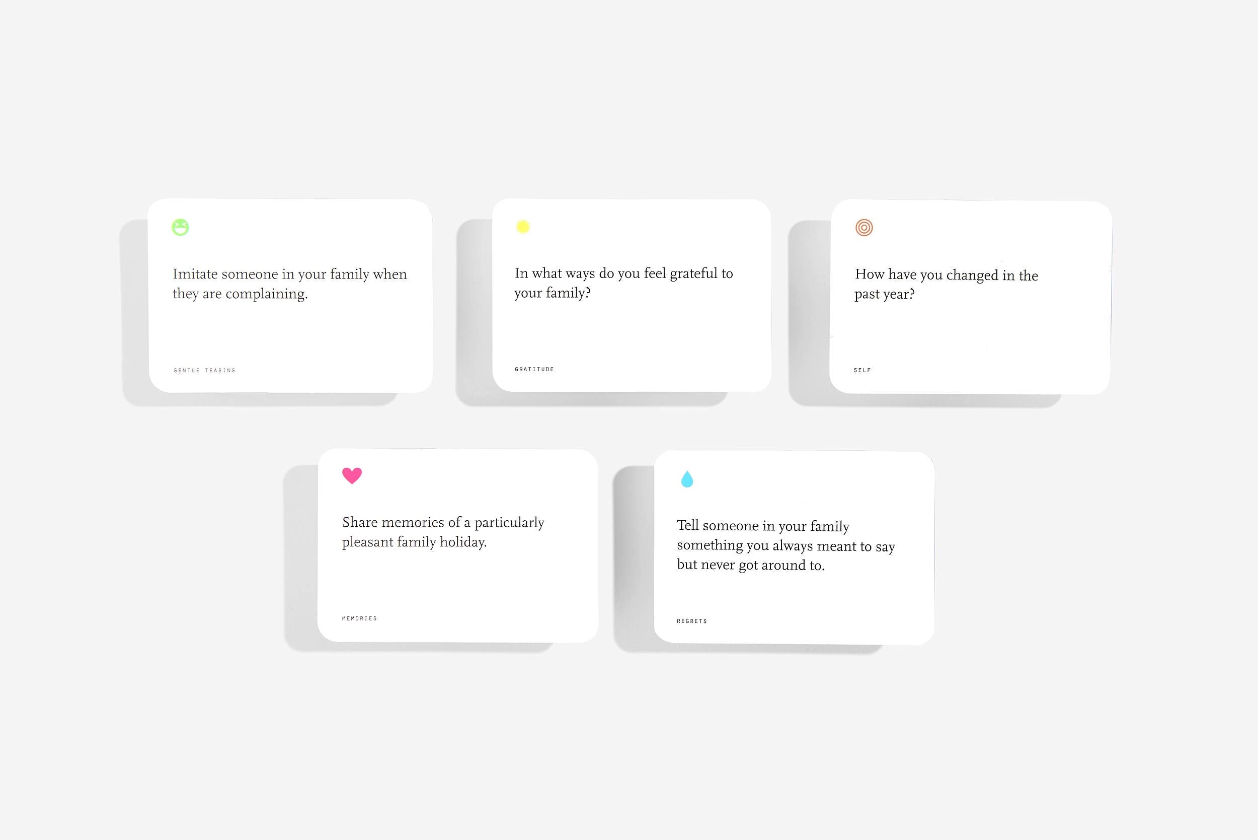 The Family Game is a thoughtful solution for busy families looking to reconnect and strengthen their bonds. With a host of randomly chosen questions, this game creates the perfect atmosphere for meaningful conversations and heartfelt laughter. Whether it's reminiscing on cherished memories or expressing long-held sentiments, The Family Game is designed to help gatherings live up to their highest hopes.