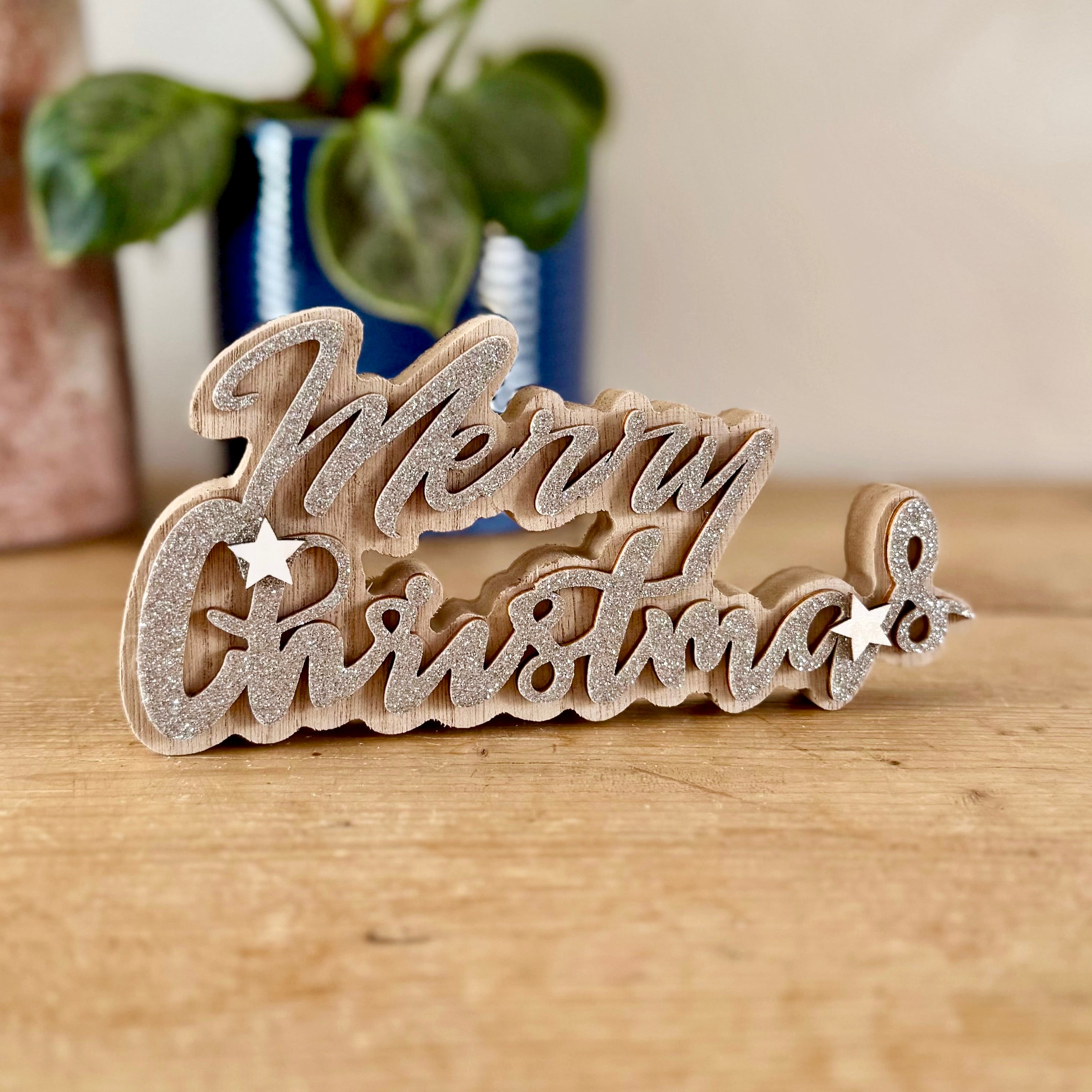 Wooden Silver Glitter Merry Christmas Sign