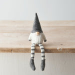 A charming little shelf sitting fabric gonk set with a grey and cream colouring