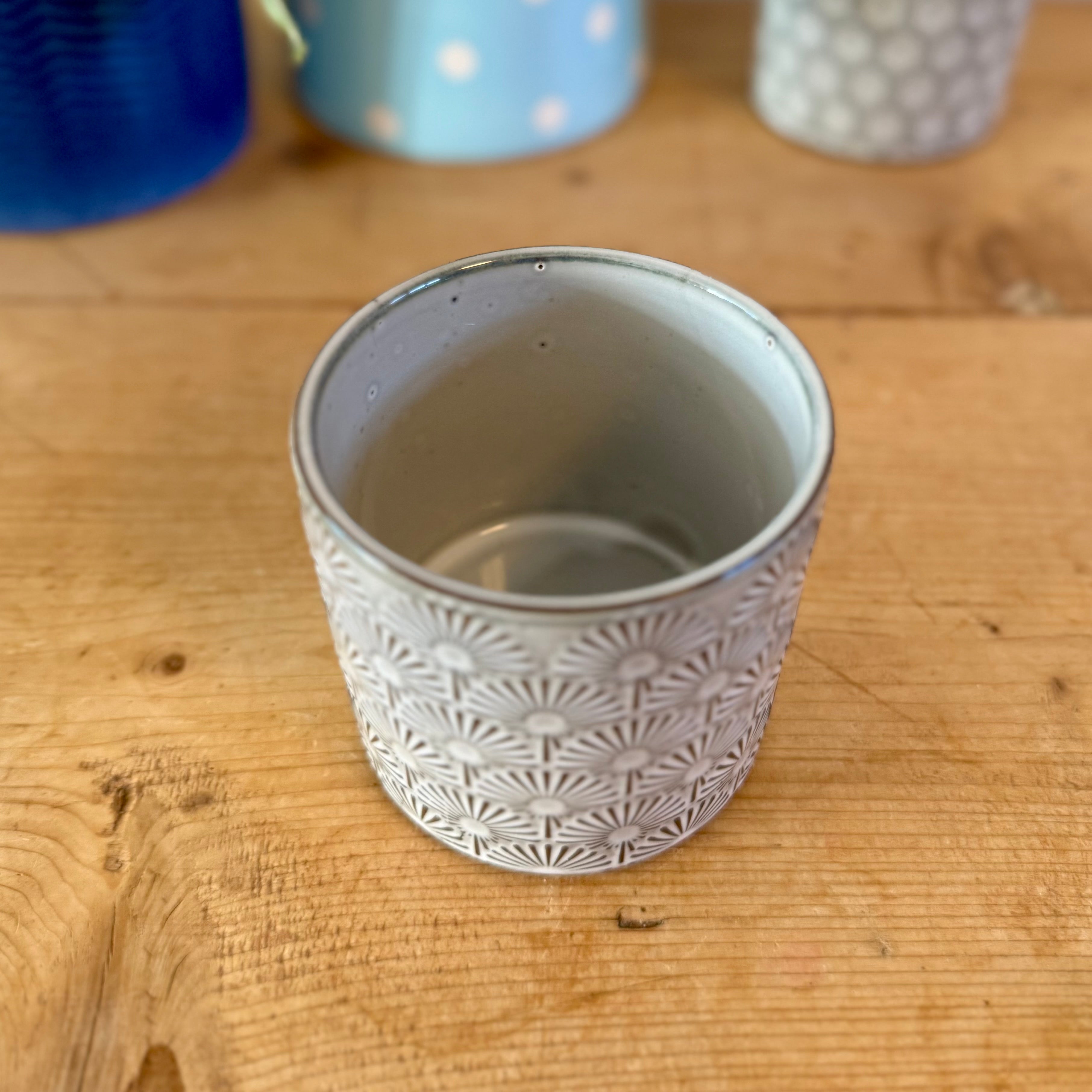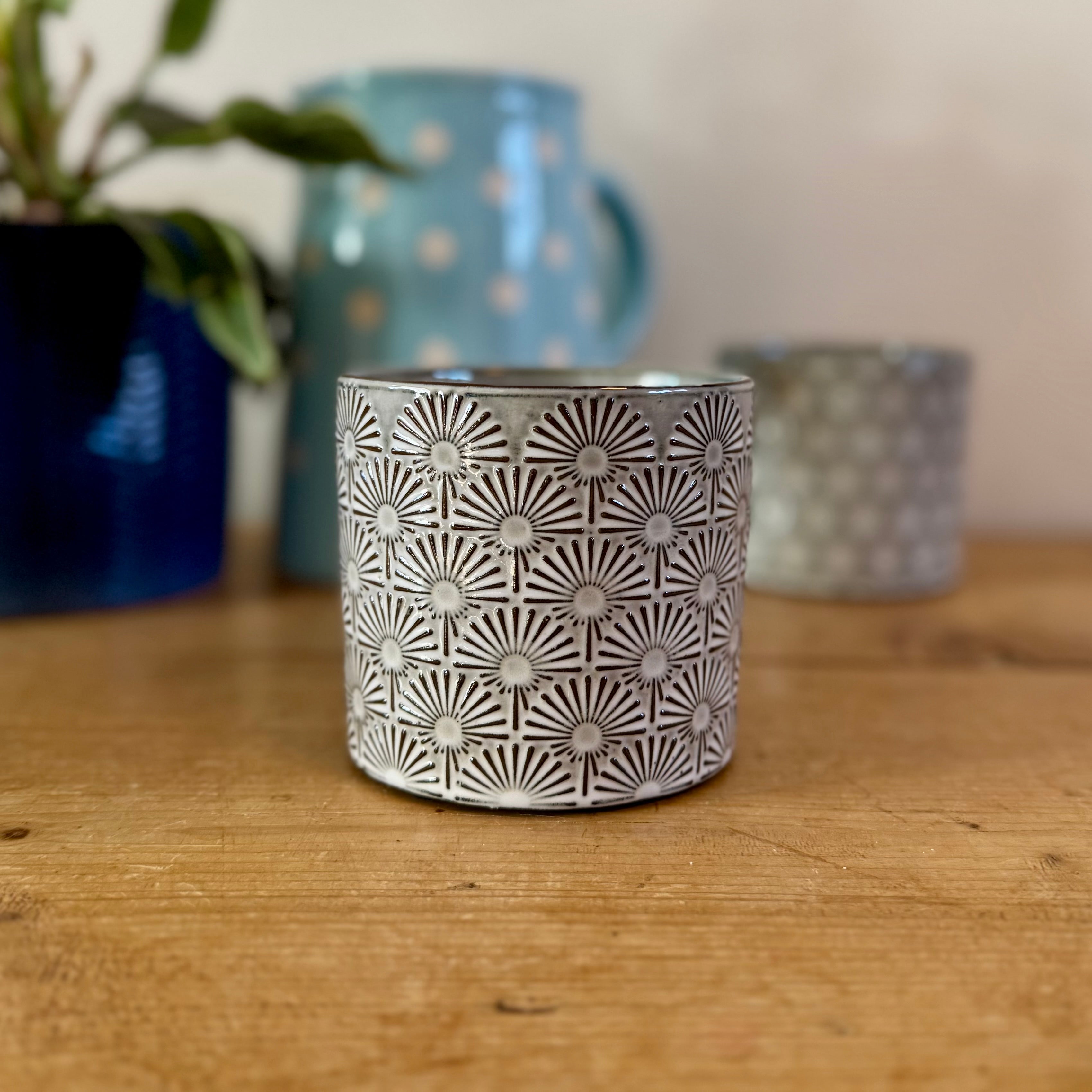 Grey Fan Patterned Ceramic Pot