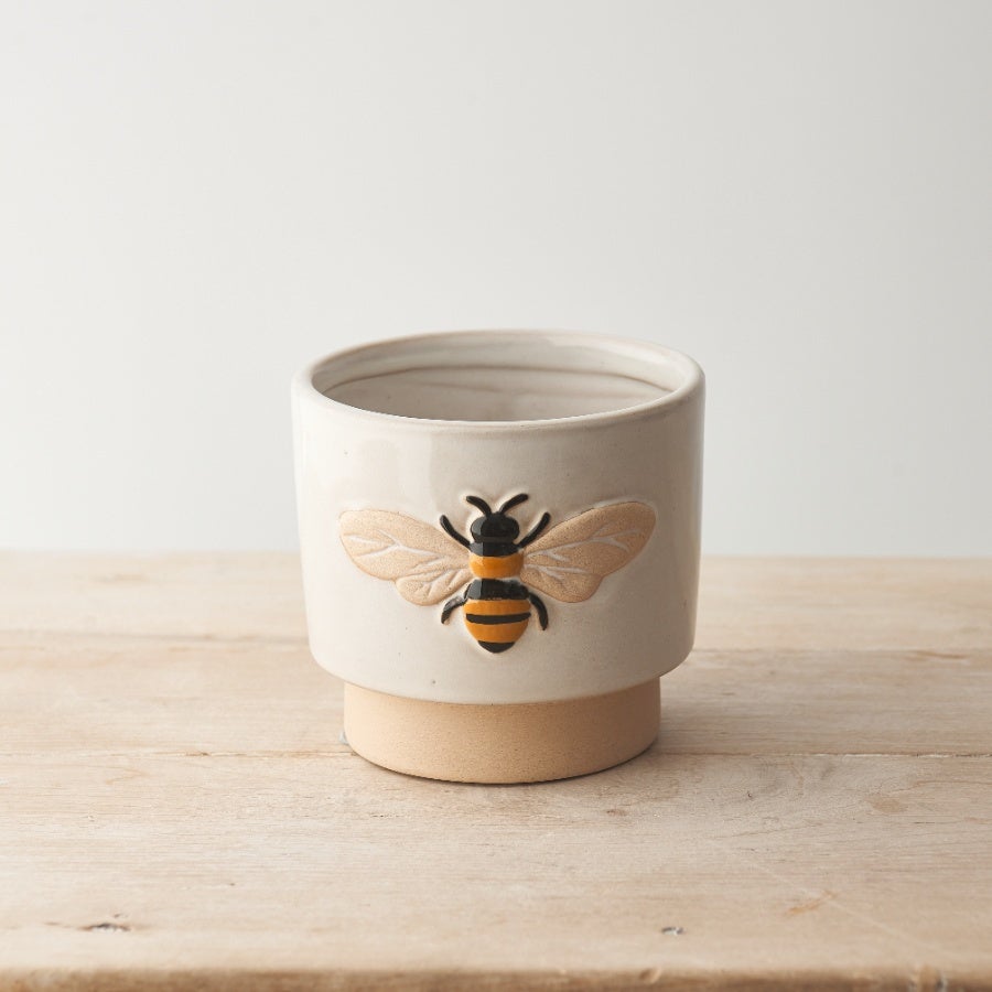 Showcase your favourite plants in this charming bumble bee design stoneware planter. With a combination of raw and glazed finishes this planter will add both character and texture to the home. The neutral colours will compliment many interior settings and the stylish design makes this a gift that would be much loved by any plant and nature lover.
