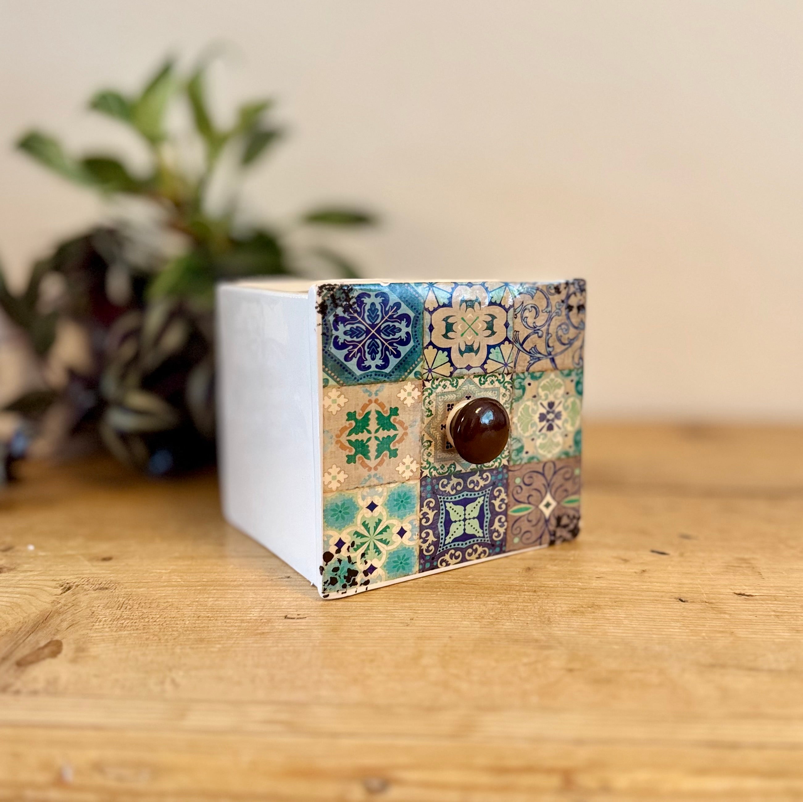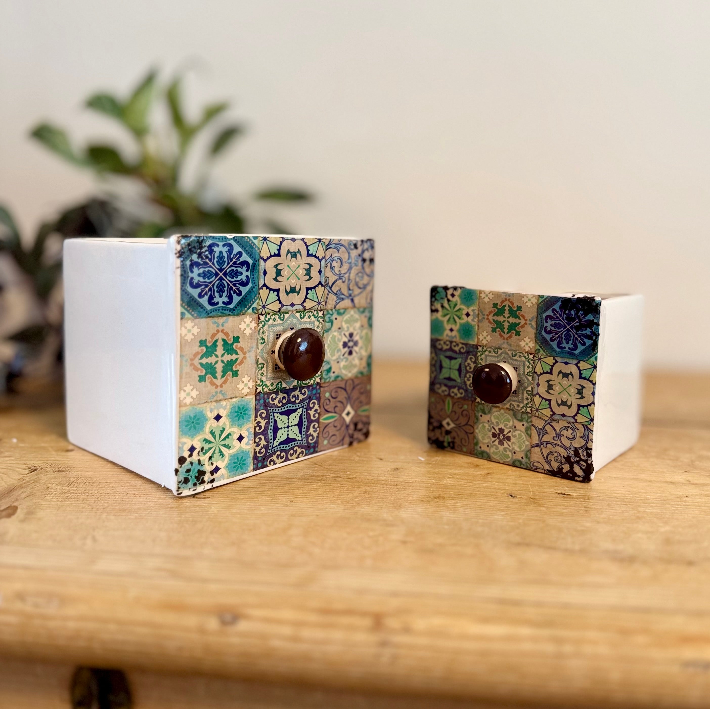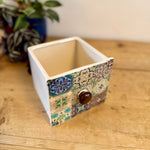 With its aged effect, this patterned ceramic drawer pot is a unique alternative for houseplants or those annoying loose ends. This won’t catch eyes, it’ll turn heads!