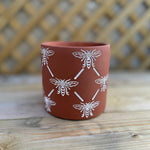 Made from durable terracotta, this pot features a beautiful white embossed bee design that adds a unique and stylish flair. Perfect for showcasing your favorite house plants, this pot is a must-have for any plant lover.