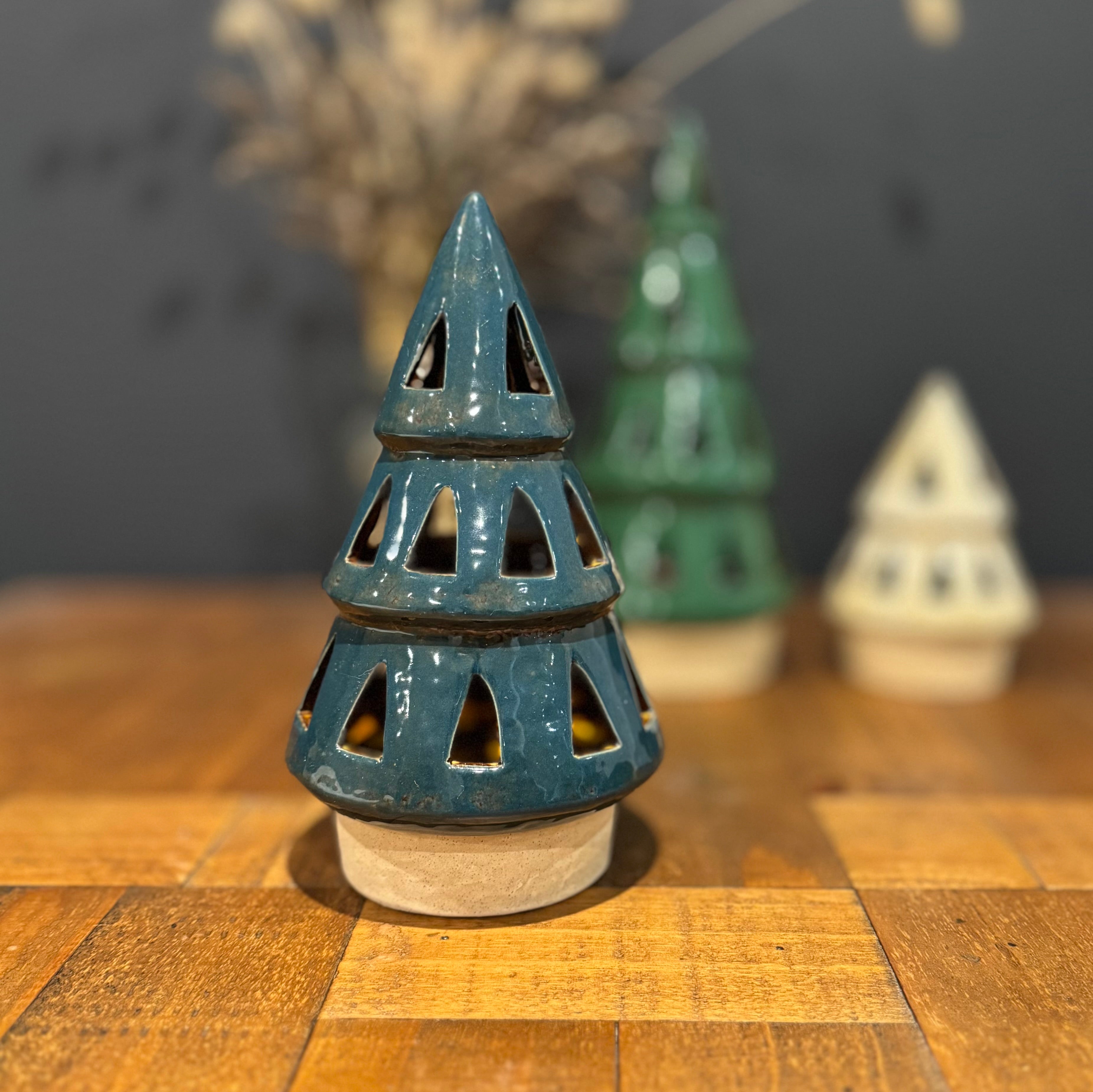 Medium Blue Ceramic Christmas Tree Candle Holder