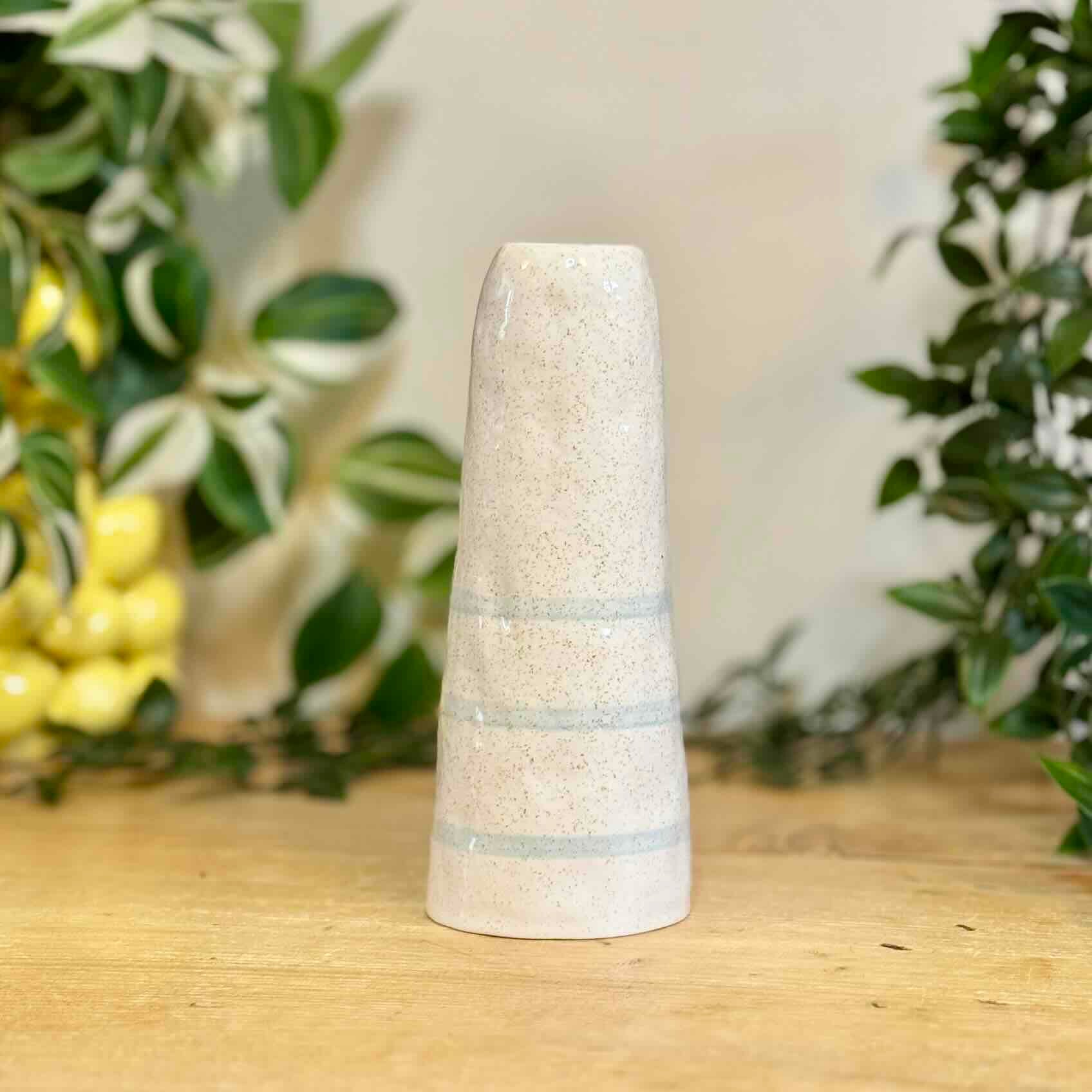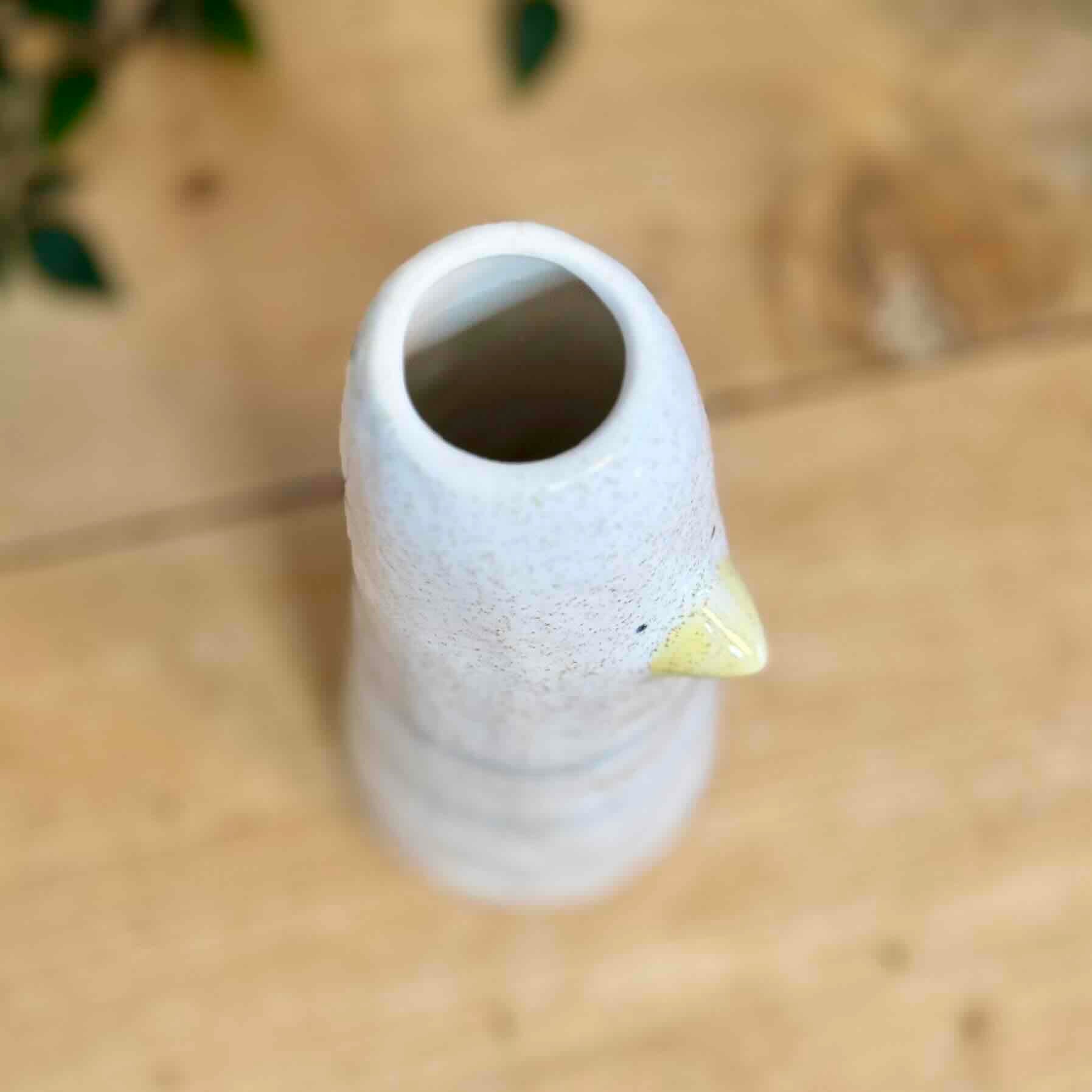 A simple yet characterful ceramic bird vase designed to bring a soft, playful touch to spring home décor and everyday interior styling. Finished in a speckled neutral glaze with subtle painted bands and a tiny beak detail, this tall silhouette works beautifully styled on a shelf, sideboard or windowsill alongside Easter décor, woodland accents or minimalist ceramic pieces. Its slim shape makes it ideal for single stems, dried grasses or small seasonal flowers.