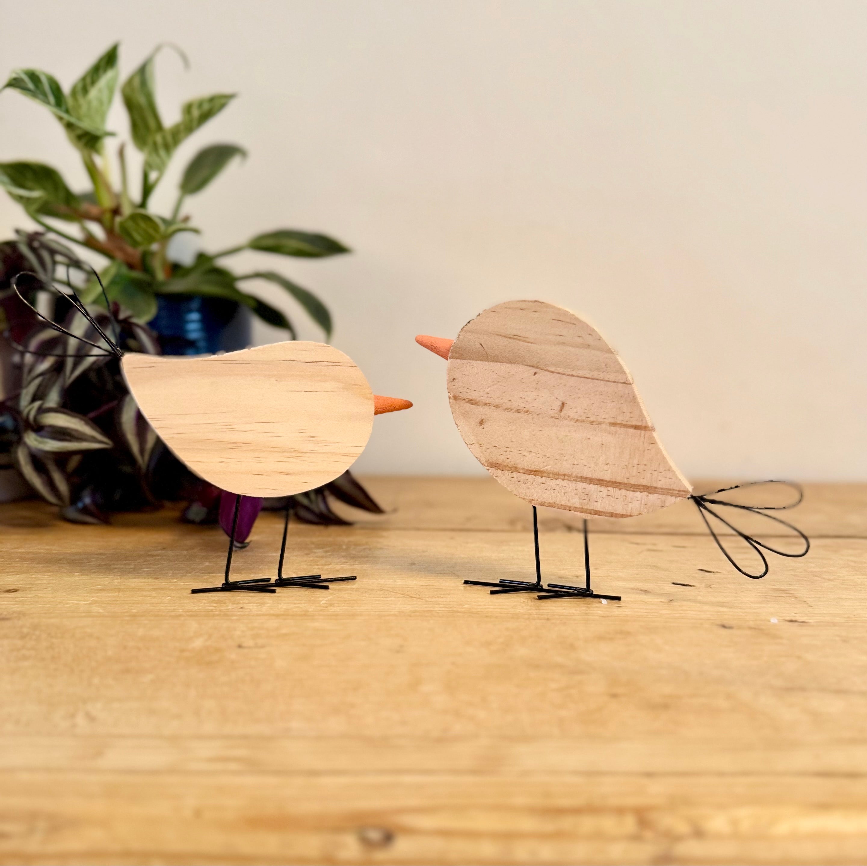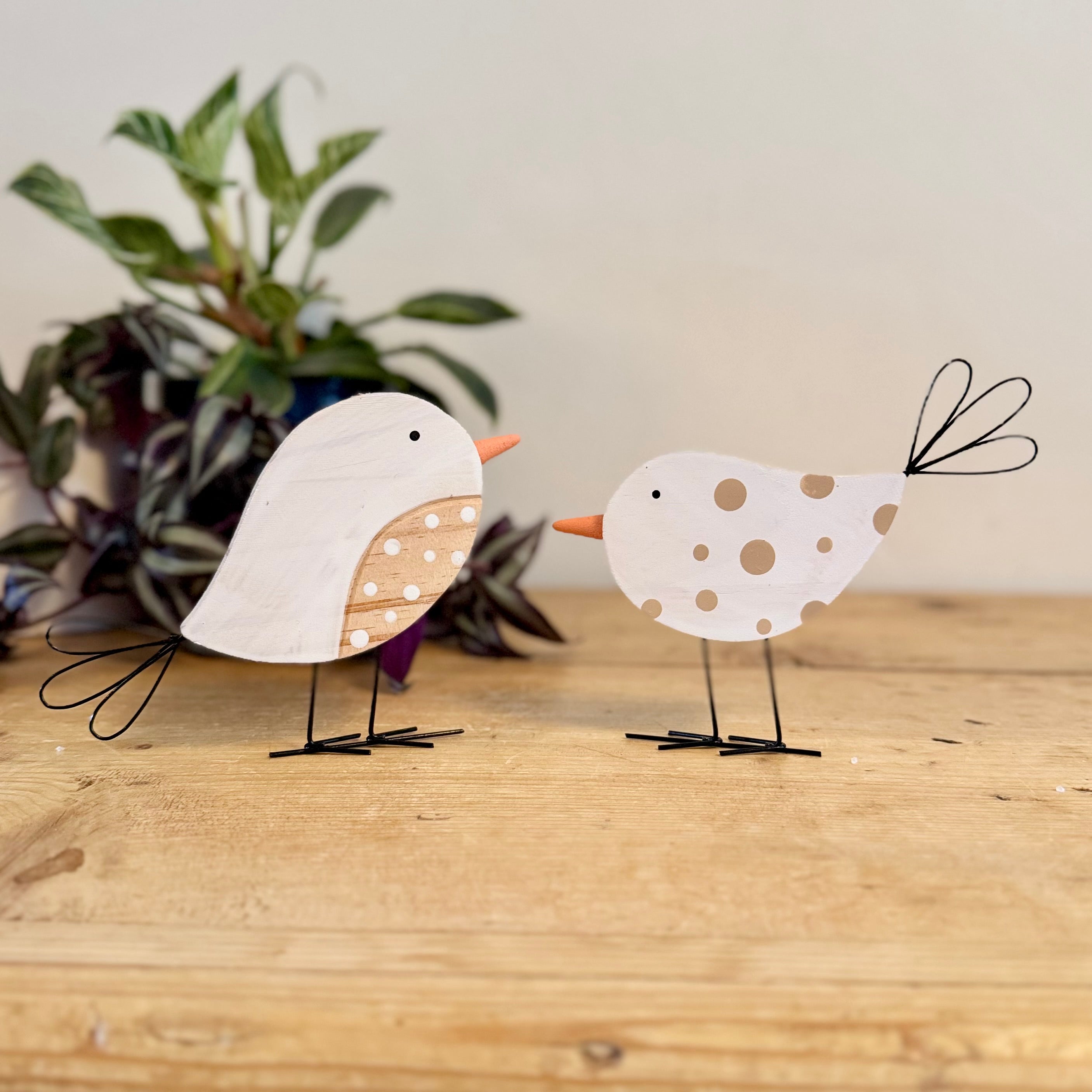 Pair of Spotty Wooden Birds